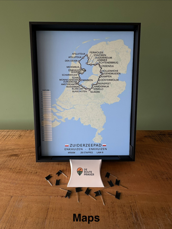 Maak van elke stap een blijvende herinnering. Dit stevige schuim-paneel toont jouw gekozen wandelroute, waarop je je voortgang eenvoudig bijhoudt met de meegeleverde vlaggetjes. Vul de datum in wanneer je de etappe gelopen hebt. Perfect voor fanatieke wandelaars die hun tocht willen visualiseren, of als uniek cadeau voor een avontuurlijke vriend(in).